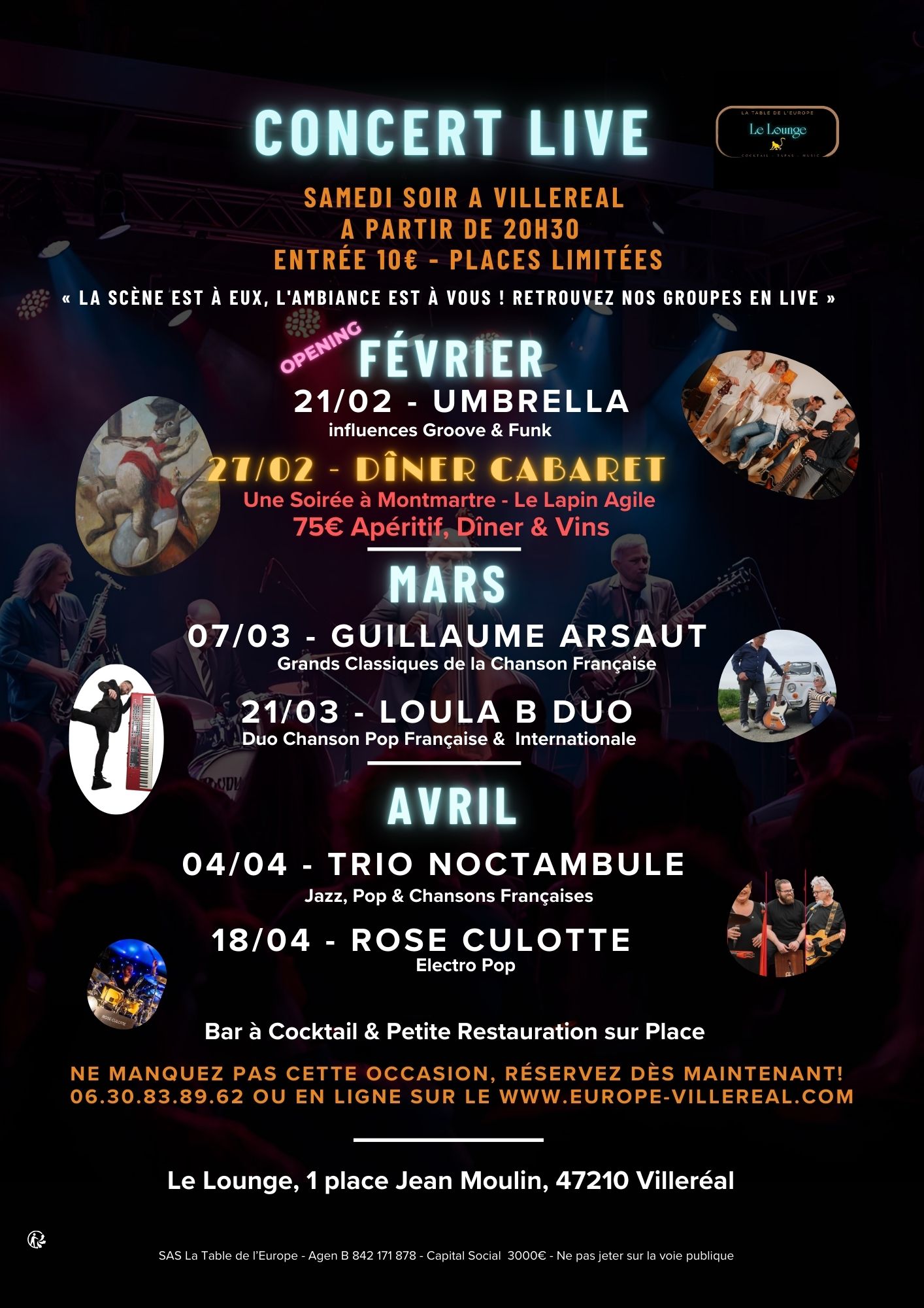 Saison Live Music & Cocktails (Octobre à Avril)